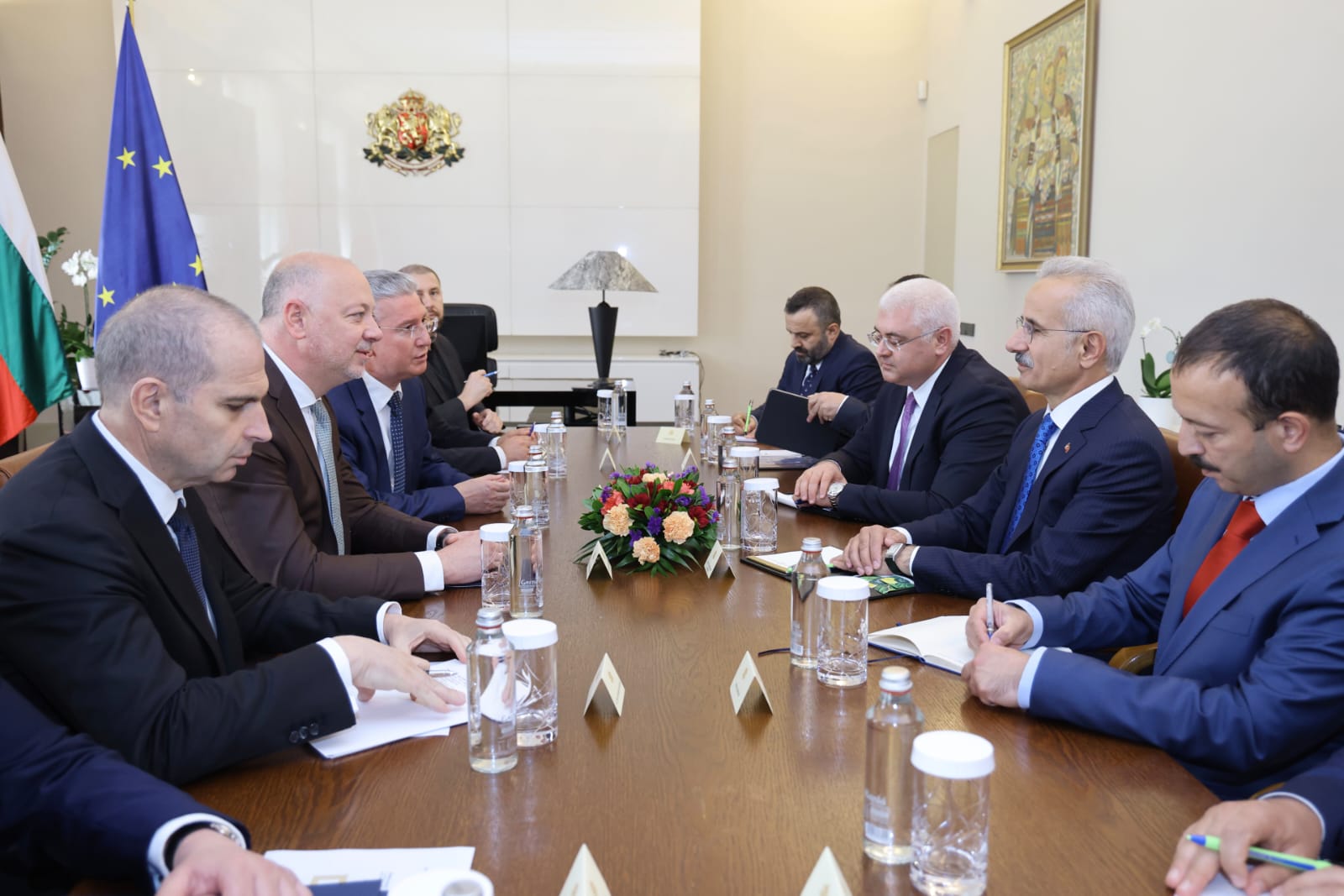 В рамките на среща на министър-председателя на Република България Росен Желязков и вицепремиера и министър на транспорта и съобщенията на Република България Гроздан Караджов с министъра на транспорта и инфраструктурата на Република Турция Абдулкадир Уралоглу бяха обсъдени въпроси, свързани с двустранните отношения в областта на транспорта между двете страни.