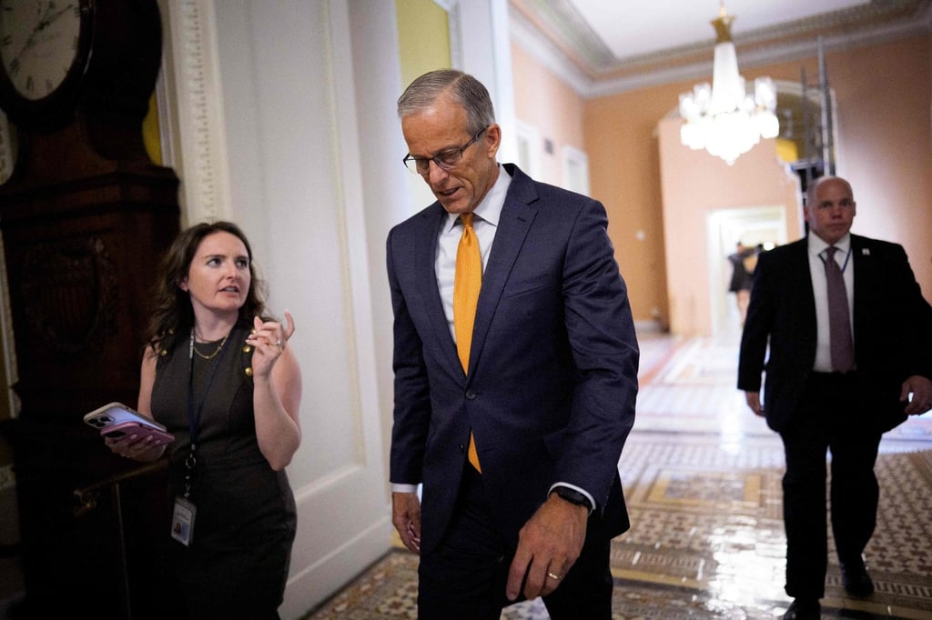 Лидерът на републиканците в Сената Джон Тюн върви към залата на Сената на сградата на Капитолия на САЩ в сряда. Снимка: AFP