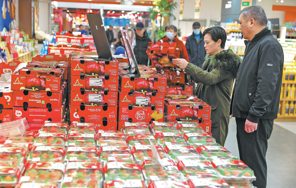 Купувачи купуват вносни череши в супермаркет в Шанхай. КИТАЙ ДЕЙЛИ