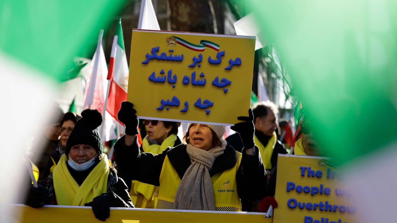 Членове на иранската диаспора се събраха в Лондон в събота в подкрепа на протестиращите в Иран, където демонстрациите се разпространиха в повече от две дузини града през последната седмица.